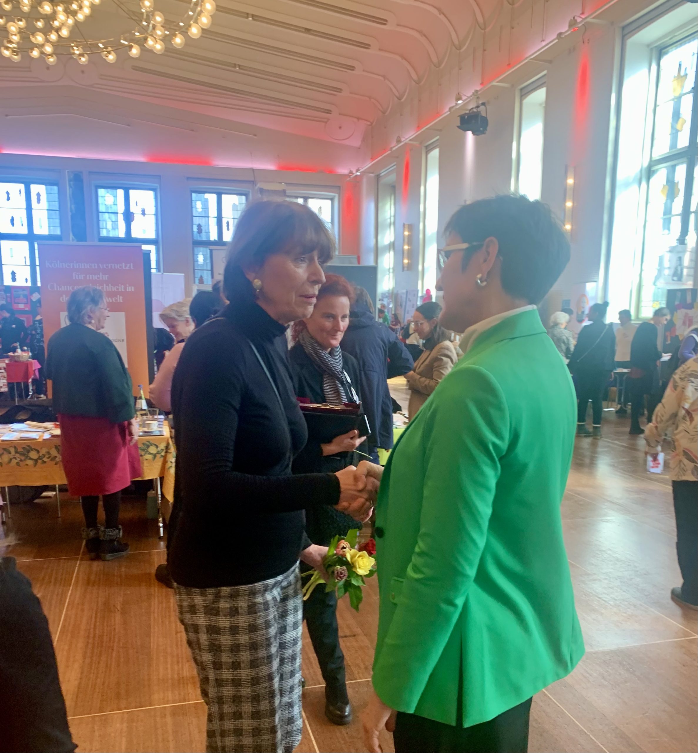 März 2023 – Der Internationalen Frauentag (IFT) ist für uns WBC-lerinnen ein wichtiger Tag. Wir sind immer mit dabei, wenn die Oberbürgermeisterin, die Gleichstellungsbeauftragte sowie das „Aktionsbündnis IFT“ einladen. Diesmal im mittelalterlichen Prachtbau Kölns, dem Gürzenich. Mit einem Stand sind wir beim Markt der Möglichkeiten samstags am 11. März 2023 im Gespräch. Netzwerken, Wissenstransfer, Fort- und Weiterbildung für Frauen stehen bei uns auf dem Programm.