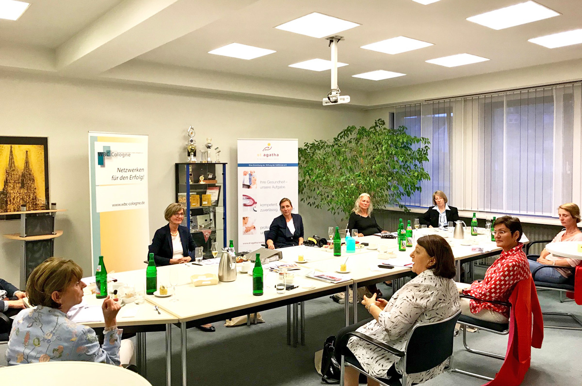 Juli 2020: 2,5 Stunden Austausch und Diskussion mit Henriette Reker! Die Oberbürgermeisterin der Stadt Köln traf acht Mitglieder des Womans-Business-Club Cologne e.V. (WBC) am 15. Juni 2020. Gastgeberin war WBC-Mitglied Susanne Jost, Geschäftsführerin des St. Agatha-Krankenhauses. Keine Frage: Frau Reker war von den Erfolgen des Krankenhauses beeindruckt; Denn zum zweiten Mal wurde St. Agatha als Beste seiner Größenklasse in Deutschland und in Köln durch das F.A.Z.-Institut ausgezeichnet.